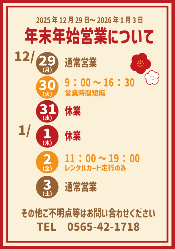 レンタルカート走行の際もご確認ください。